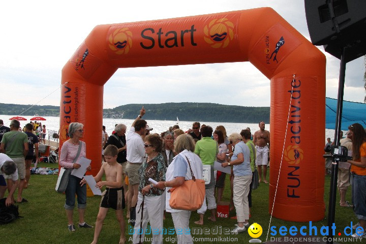 Die Teilnehmer standen an einer 150 Metern Schlange in mehreren Reihen im Uferbereiches des Strandbades Westbad der Bodensee-Therme in Überlingen!