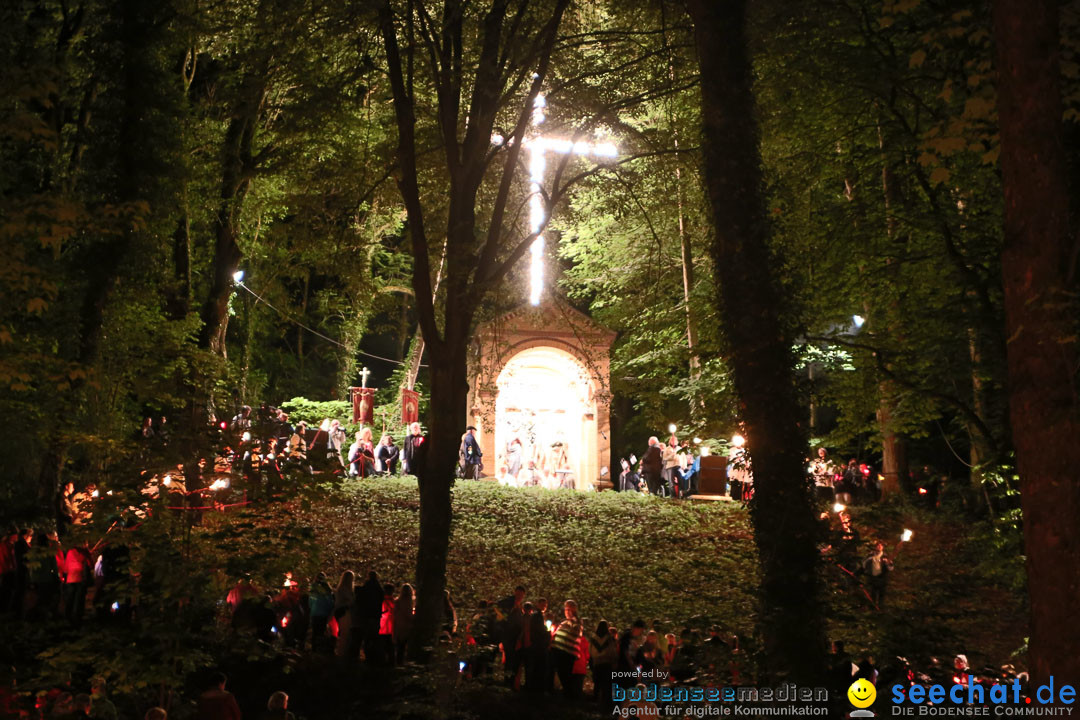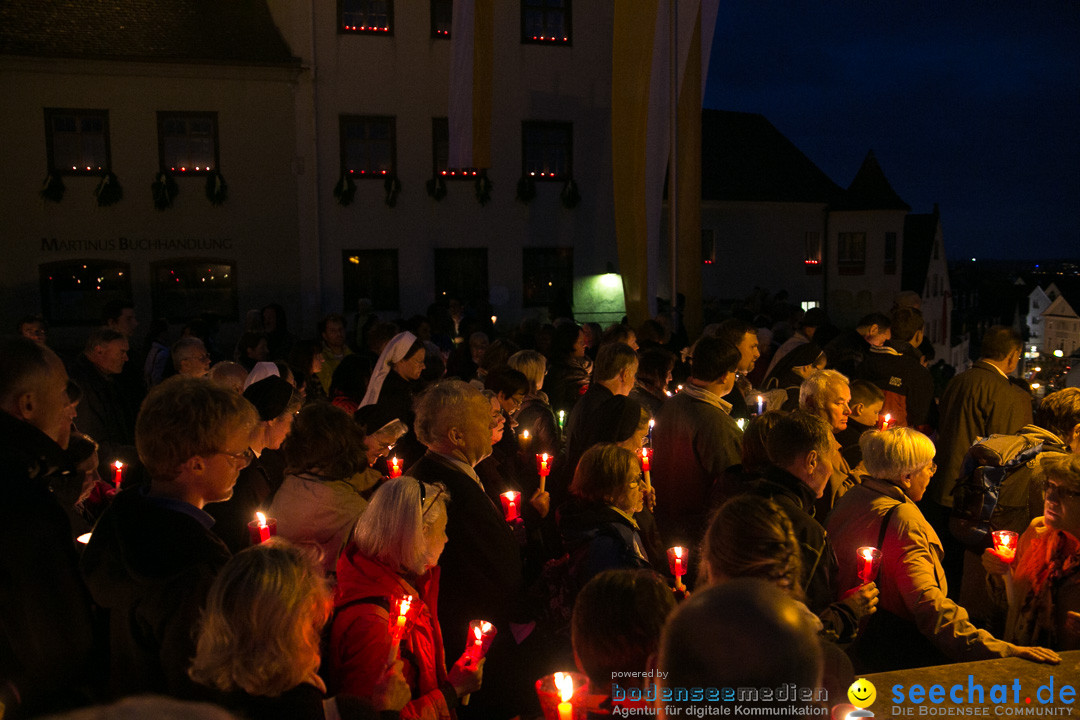 Am 29.05.14 fand die traditionelle Lichterprozession statt. Beginnend mit der Musik des Basilikachor und der Festpredigt des Abts Reimund Schreier OPraem (Ordo Praemonstratensis) aus Österreich über das Blut und die Liebe zogen die Gläubigen von der Basilika durch die Innenstadt Weingartens zur Andacht auf den Kreuzberg.