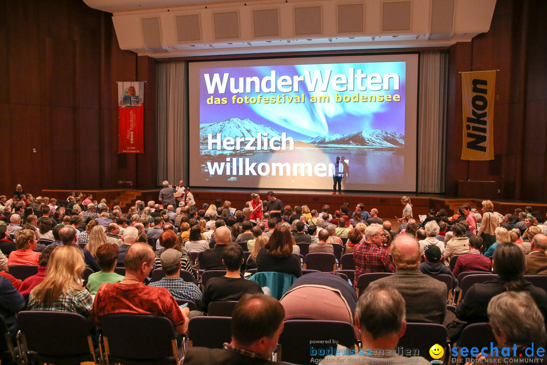 In den Räumen des Graf-Zeppelin-Hauses fand am letzten Wochenende das Wunderwelten Fotofestival statt. Neben einer beeindruckenden Fotoausstellung gab es aber noch viel mehr zu sehen und zu hören. Eine Haus-Fotomesse brachte den Besuchern das Thema Fotografie und damit aktuelle Technik, Bücher, Software und Zubehör näher. Bei Nikon und AC-Foto, 2 große bekannte Firmen im Fotobereich, konnte man sogar seine Kamera umsonst reinigen lassen. Weiterhin gab es Vorträge zu Fachthemen, Fotokurse, Fotoausflüge und natürlich die ca. 2 stündigen Fotoshows mit teilweise vielfach ausgezeichneten Fotografen. Spannend und lustig zugleich schilderten sie, wie die Fotos entstanden sind. Hinter all dem Stand natürlich auch der Natur- und Umweltschutzgedanke. So waren auch Greenpeace und weitere Organisationen vertreten und machten auf Probleme aufmerksam.