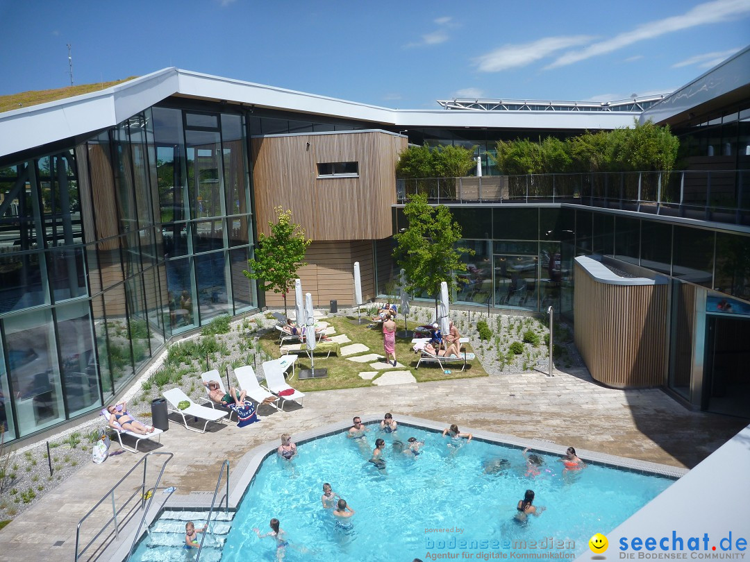 Zur Eröffnung gab es viele Vorführungen und Attraktionen sowie Bands: Celebrate und Accoustic Affair. Tauchsportclub, DLRG, Tanzvorführungen der Tanzschule No. 10, Jugendzentrum Molke, Karate- und Kickbock-Vorführungen des Karate-Teams Bodensee, Staffelschwimmen, Trainingseinblicke bot der Schwimmverein und Tauch-Sport-Club sowgar Unterwasserrugby wurde gezeigt.